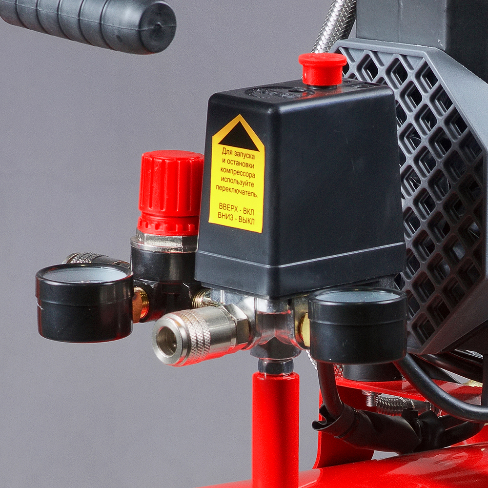 - Прессостат для поддержания заданного давления в ресивере и обеспечения повторного запуска.