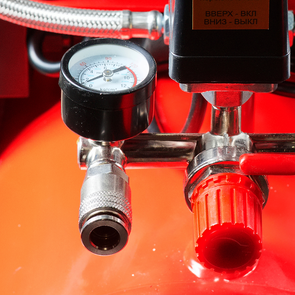 - Прессостат для поддержания заданного давления в ресивере и обеспечения повторного запуска.